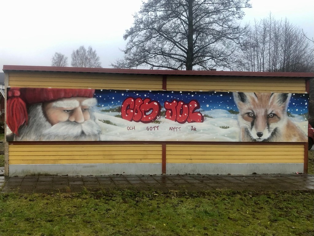 I december har jag också fått tillgång till två nya väggar i Viljans Park i Fritsla. Bodarna står precis bredvid scenen där jag brukar måla och det känns superkul att få möjligheten till fler ytor att måla på.
