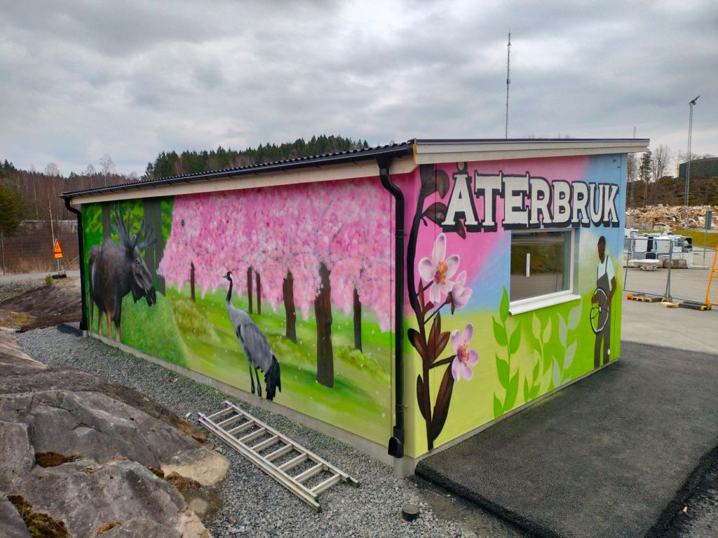 Nu lagom till påsk blev mitt senaste projekt färdigt. Med sina 3.5 m i höjd och 10.5 m i bredd har den nybyggda Återbrukscentralen har en total yta på över 90m2.
