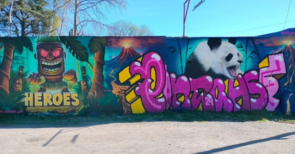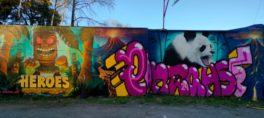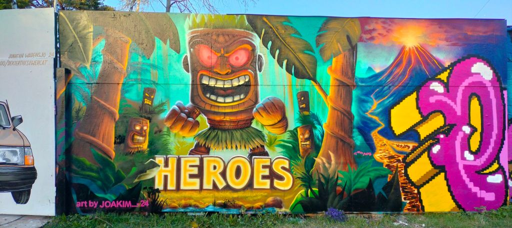 Väggen jag målade tillsammans med Heroes var den första väggen när man kom in i området. Det kändes speciellt att få börja festivalen med ett så starkt och visuellt angrepp på besökarna. Vi hade aldrig målat tillsammans förut, så det blev ett häftigt samarbete där vi fick lära oss av varandras processer och kreativitet. Hur skulle vi kunna blanda våra stilar för att skapa något unikt.