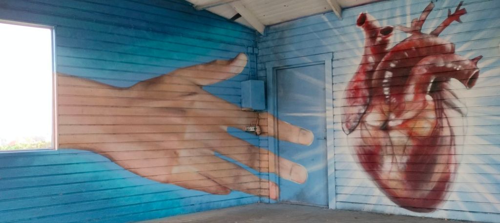 Så jag lekte med lite olika idéer och landade i att jag skulle måla två händer som sträcker ut sig mot hjärtat. Så under några kvällar efter att barnen blivit nattade, packade jag sprayburkarna i bilen och drog upp till parken.