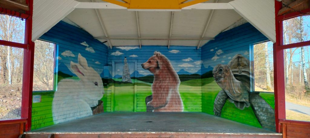 Denna gången ville jag fokusera på att måla djur och landade i att måla en björn. Under tiden jag stod och målade björnen så började iden växa fram om att måla en kanin och sköldpadda bredvid.