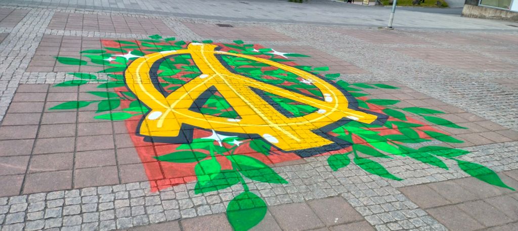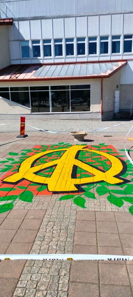 Mitt i Kinna på Mor Kerstins torg har jag målat ett stort peace-märke.