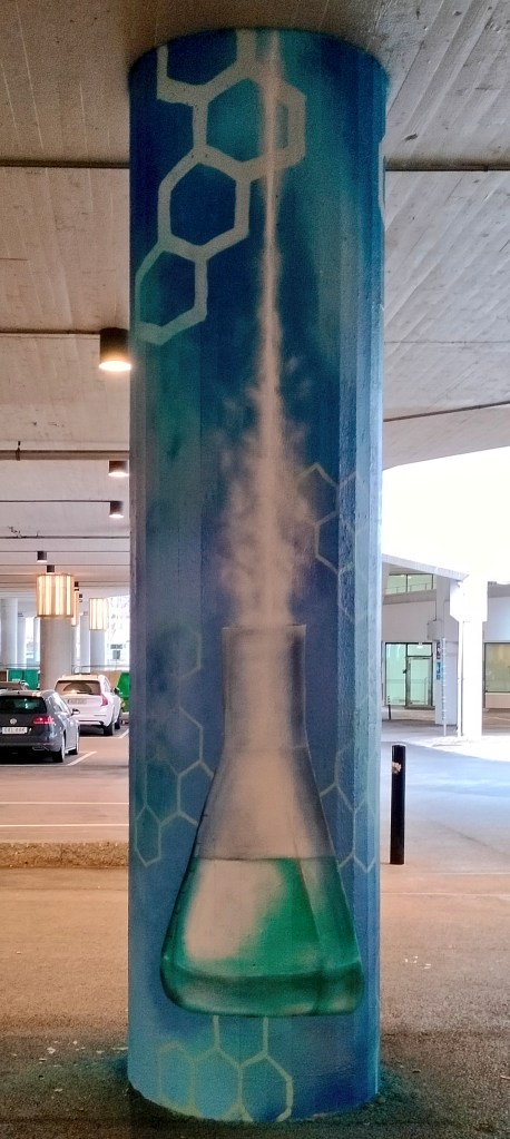 Det som skiljer pelarna åt är huvudmotivet, som jag noggrant valt ut; här har jag försökt hitta olika saker som symboliserar Life Science och Health Tech.