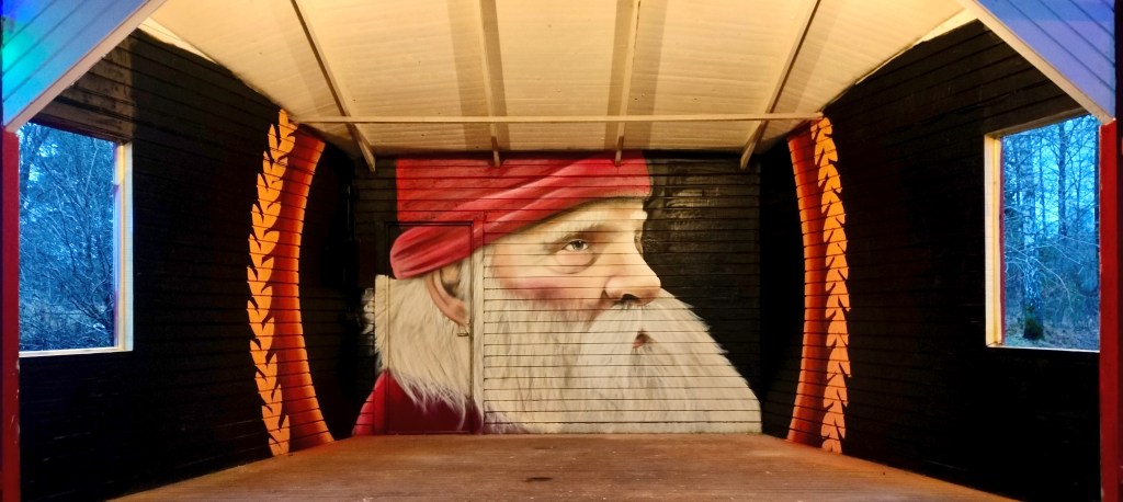 December! Årets julmålning är nu sprayad uppe i Vilkens Park i Fritsla. En fin liten tradition.Tack Fritsla Byalag